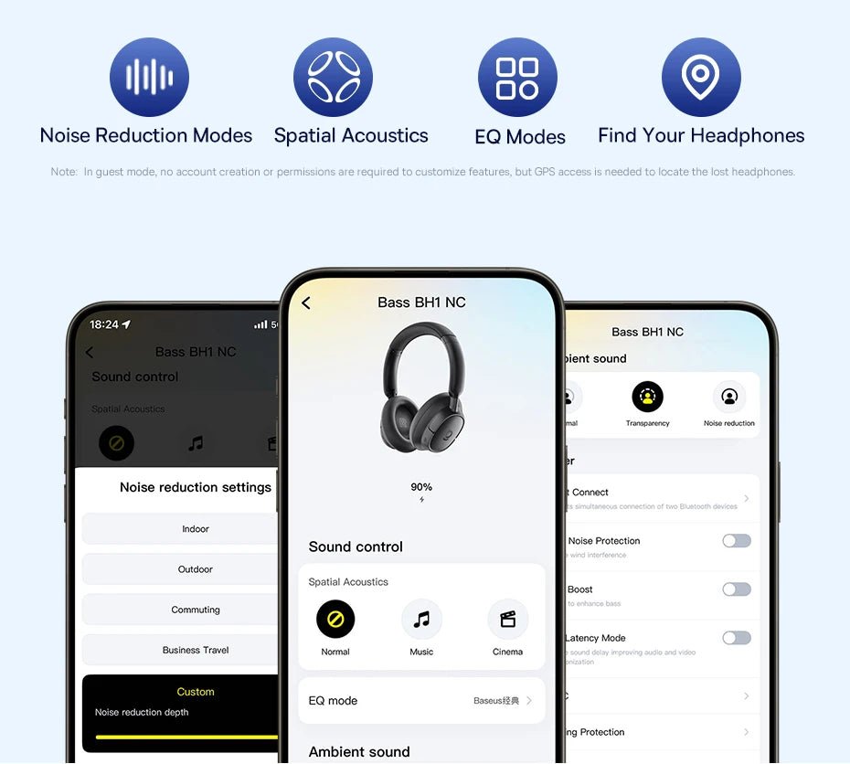 Modes de réduction du bruit/Contaustiques spatiaux/Modes EQ/Trouvez vos écouteurs
